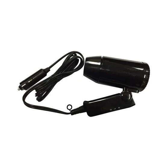 - Portable 12V hair dryer which plugs into car accessory socket, while travelling