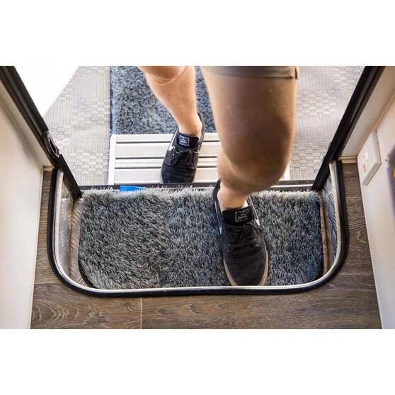 Keep the mud and dirt out of your caravan with the Companion Caravan Step Dust Off Mat! This mat is 26x58cm with rounded corners and made to suit most standard caravan steps. It is made from tough UV stabilised materials to give it a long life. The 40mm long blades on the mat have been created for comfort and excellent cleaning functionality. It packs away to a compact size with velcro straps for easy and neat storage when you’re on the go.