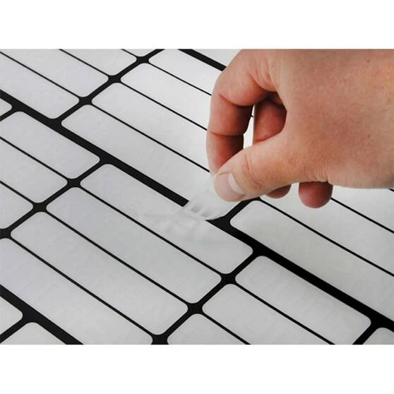 - White text on clear vinyl for subtle but clear labelling
