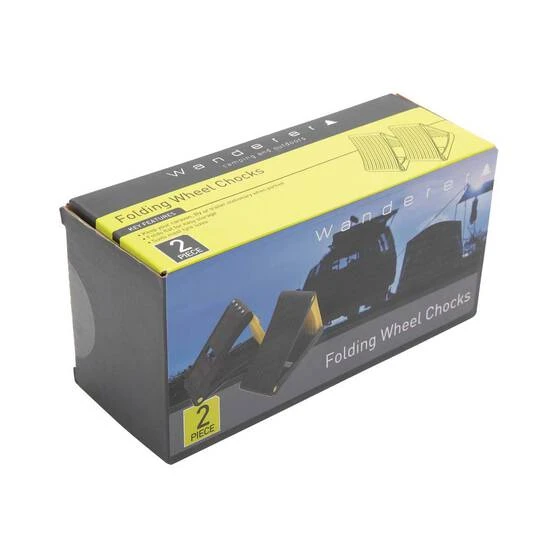 The Wanderer Folding Plastic Wheel Chocks are designed keep your caravan, RV or trailer stationary when parked. These wheel chocks may also be used in conjunction with Leveller Ramps to provide an extra safety mechanism in the unlikely event that your tyres roll off the leveller ramps. They are suitable for a variety of tyre sizes and are easy to set up. Simply place the two Folding Plastic Wheel Chocks squarely against the centre of the two tyres. The convenience of the folding design when storing the two chocks makes them stand out from comparable products.